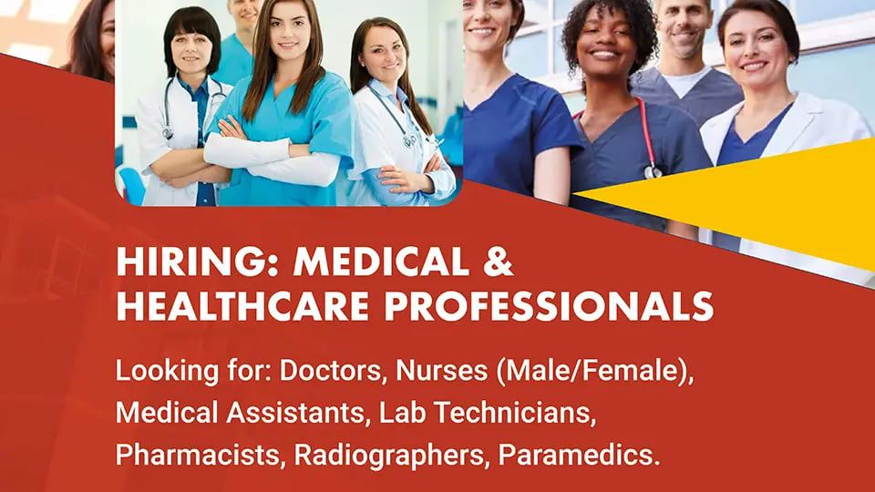 π Looking for: Doctors, Nurses (Male/Female), Medical Assistants, Lab Technicians, Pharmacists, Radiographers, Paramedics